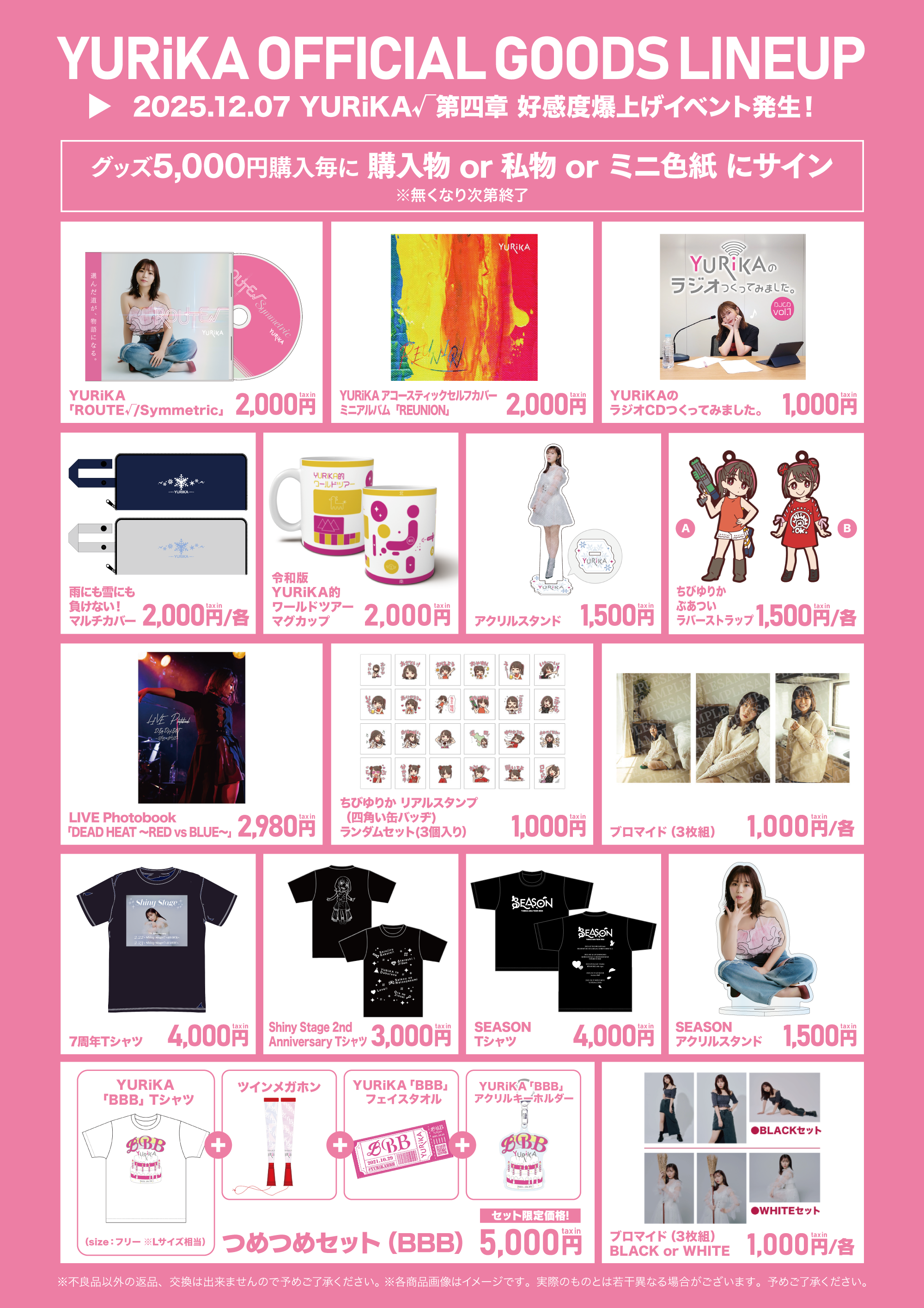 2025年12月7日(日)に開催されるFC限定イベント「YURiKA√第四章 好感度爆上げイベント発生!」グッズラインナップが公開されました!